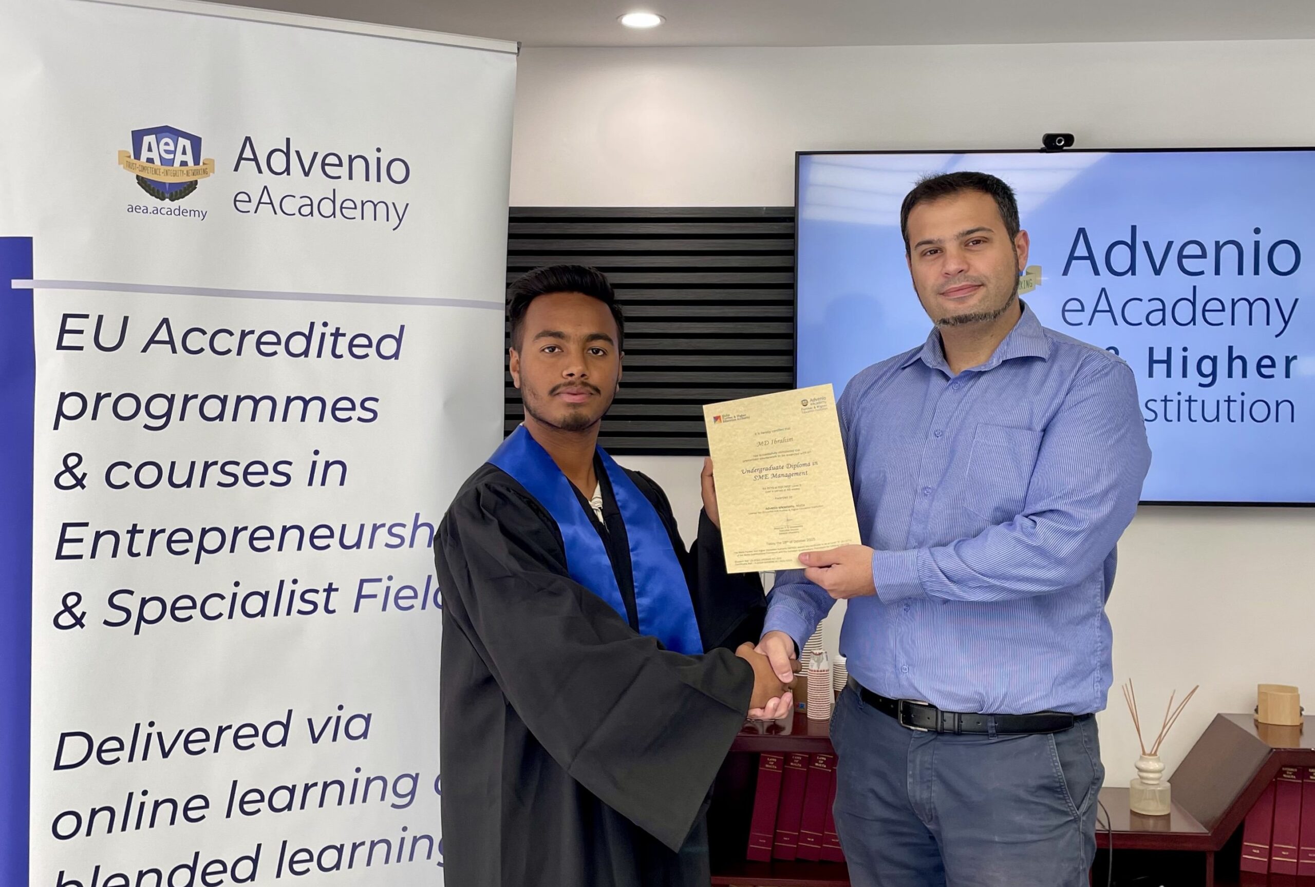 MD Sazib being presented with the Undergraduate Higher Diploma in SME Management Certificate