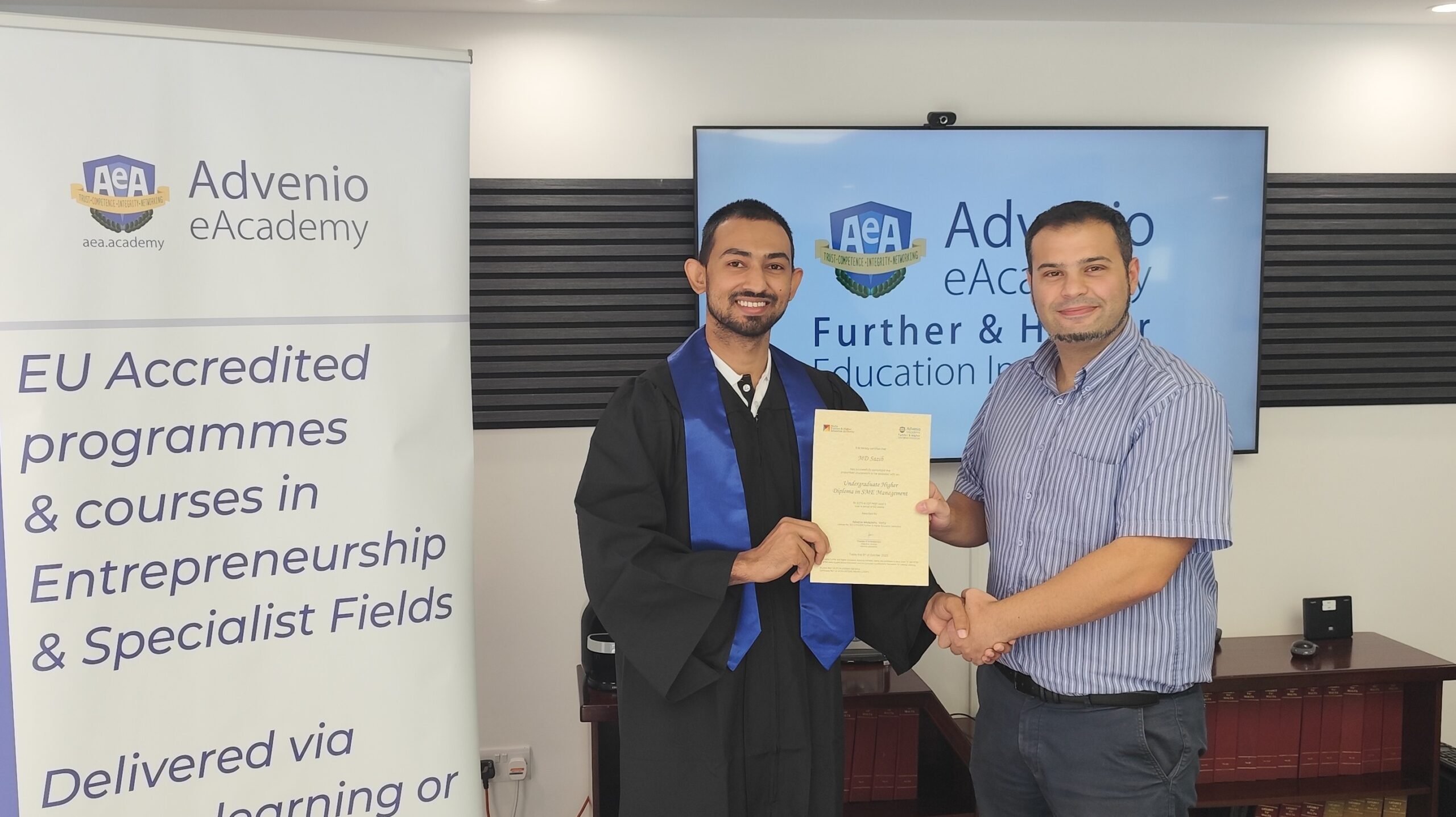 MD Mehedi Hasan being presented with the Undergraduate Higher Diploma in SME Management Certificate